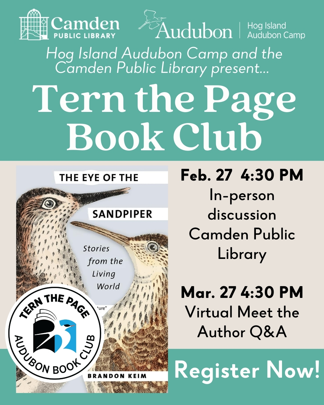 Tern the Page is a book club for bird nerds and nature enthusiasts, put on in collaboration with Hog Island Audubon Camp. Read more and sign up!