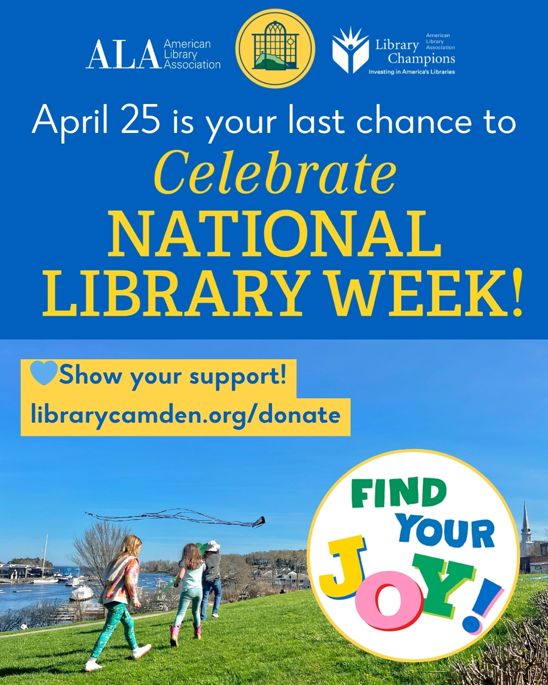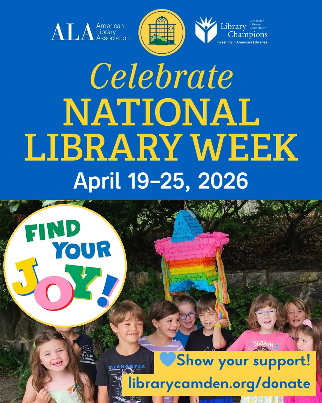 National Library Week is an annual celebration highlighting the valuable role libraries and library workers play in transforming lives and strengthening our communities. This year, we’re inviting everyone to ✨Find Your Joy✨ at Camden Public Library! To show your support for library services, please consider making a gift this week. We appreciate you!