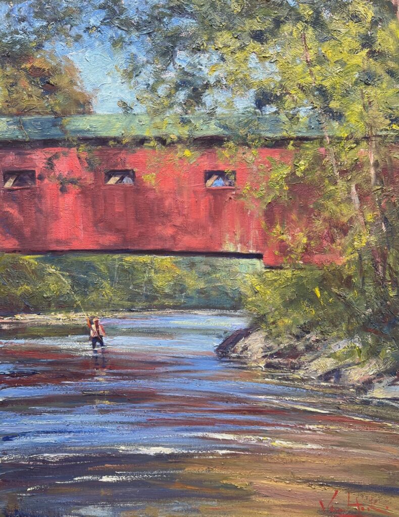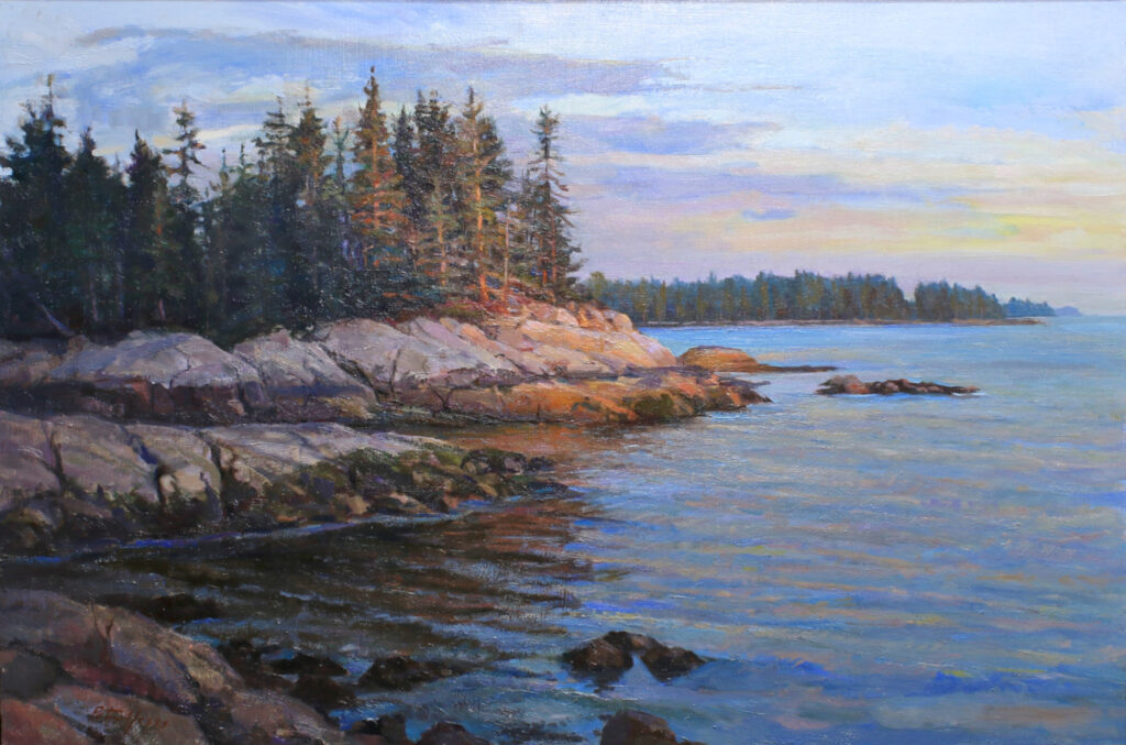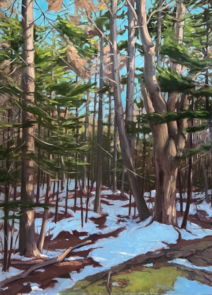 Peter works from his home studio, painting scenes from nature in a soft, realistic style. “I look for a scene or a moment that tells an unfinished story,” he says. His paintings find a balance between detail and atmosphere, intentionally leaving space for reflection. “My goal is to draw the viewer’s attention to the underlying beauty of the subject, but leave them with a desire to discover more.” His work is represented in Maine by Camden Falls Gallery, Camden; Roux & Cyr International Fine Art Gallery, Portland; Yarmouth Frame and Gallery, Yarmouth; and Trove, Searsport; as well as at True Grit Gallery, Middleboro, MA; and Visions of Vermont Gallery, Jeffersonville, VT.