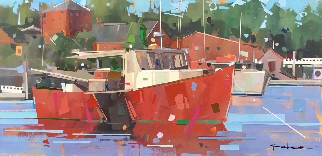 Jonathan says of his work, “Each painting is a puzzle to piece together…a playful, yet serious endeavor, a celebration of our surroundings. We see many things every day with heightened digital clarity, yet original artwork always conveys a sense of mystery and magic for us all. Painting is an unwritten way to connect our hearts and minds through depictions of shared experience.” Jonathan graduated from Connecticut College in 1993 with a Cum Laude Distinction in Fine Art. His works include the harbors, beaches, vessels, and architecture of New England’s coastal environment. Recent Awards: 2021 Cape Ann Plein Air; First Place Award, 2021 Perkins Cove Paint Out, Ogunquit, ME; Second Place Award, 2021 American Impressionists Society President’s Choice Award, Omaha, NE. Represented by Camden Falls Gallery.