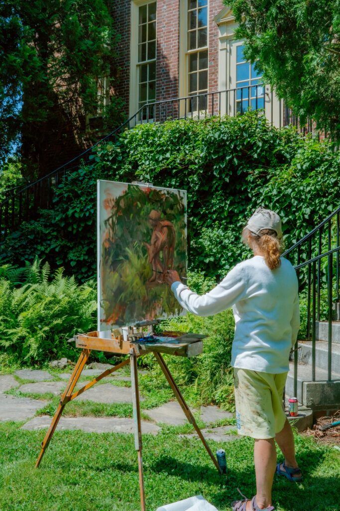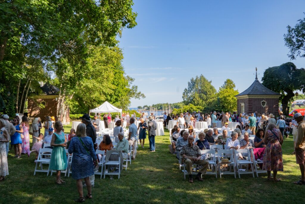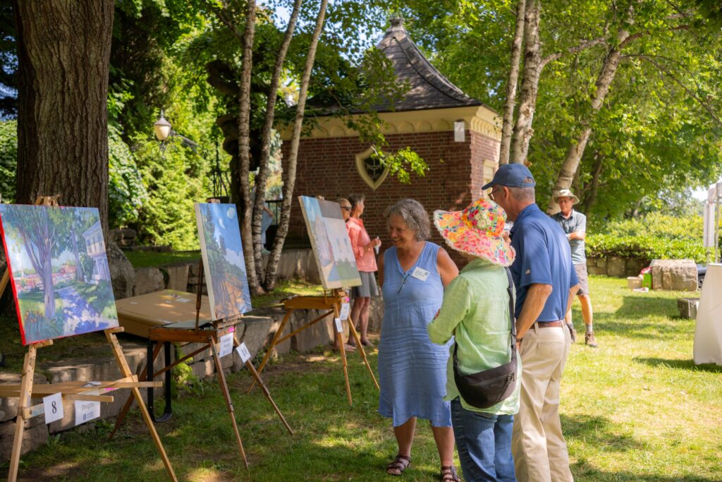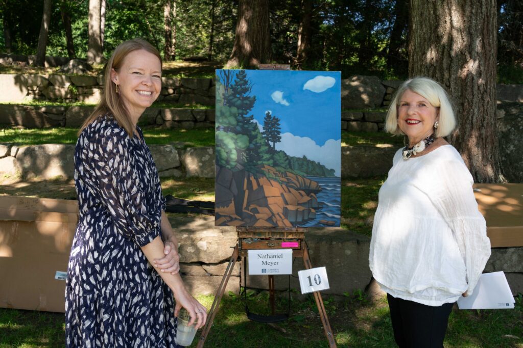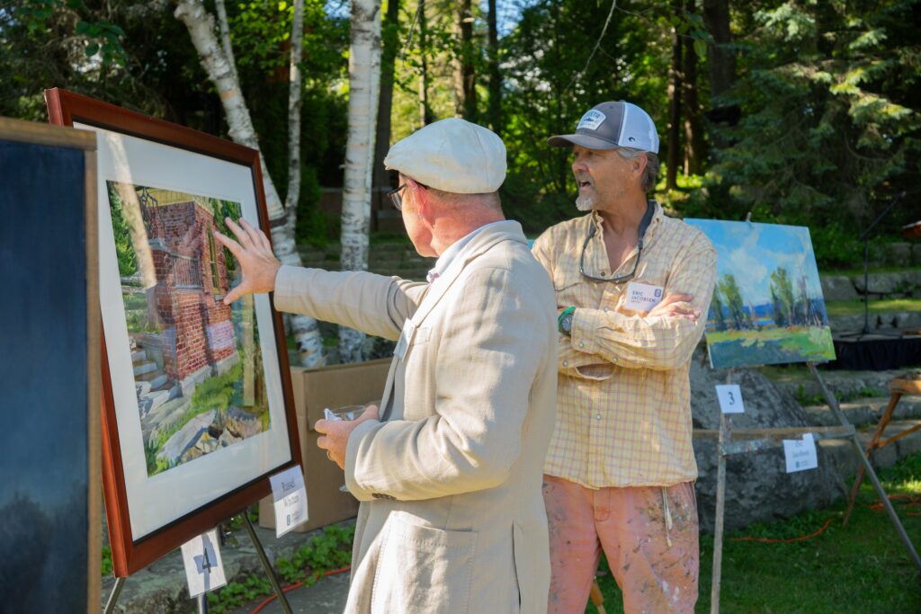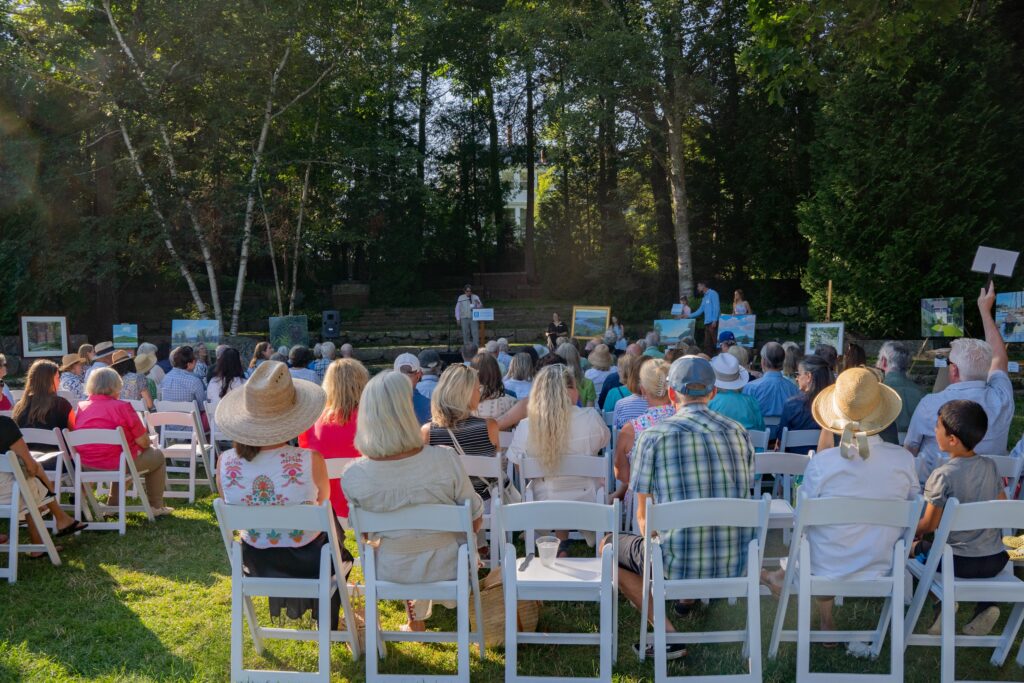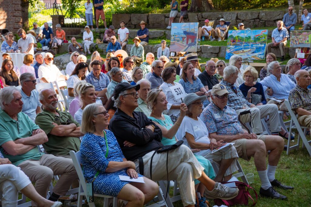 The auction capped a full plein-air weekend, featuring 21 talented landscape artists from around New England. On Friday and Saturday, along with Sunday morning, anyone could meet the artists and watch them paint on-location outdoors. Each painter, with their own unique style and perspective, brought both beloved and surprising views of the Camden and Rockport area to the canvas. Before the auction on Sunday, the public browsed the freshly created paintings in the historic Amphitheatre during an outdoor wet-paint exhibit.