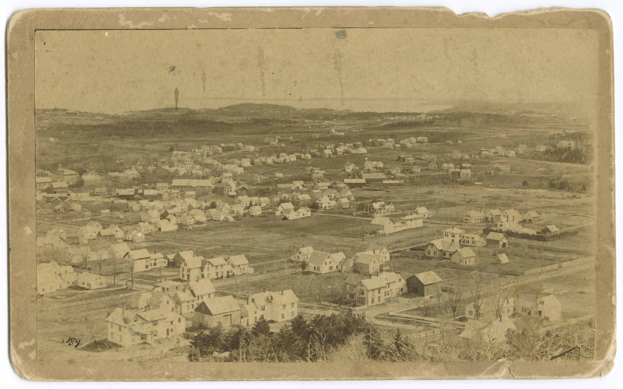 This is a picture taken from Mt. Battie around 1880 looking toward Rockport harbor. View of Camden from Mt. Battie looking southwest toward Rockport in 1891.