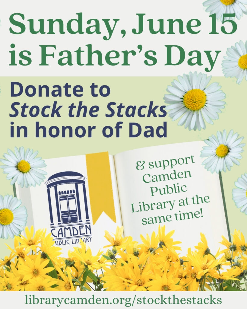 This year, you can donate to our Stock the Stacks fund and dedicate a bookplate to him. Learn more and make your gift for Dad at librarycamden.org/stockthestacks!