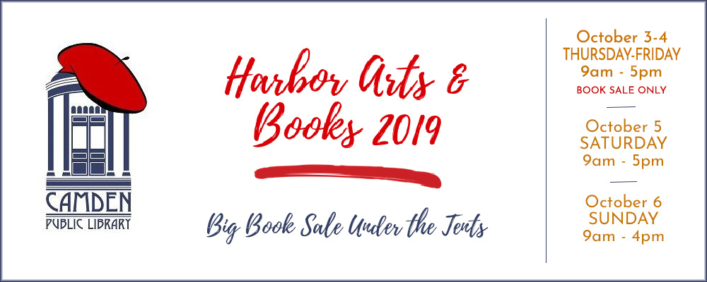 Hosted by the Camden Public Library, the 2019 Fall Harbor Arts & Books Fair will take place on October 5th & 6th, 2019 (book sale begins Thursday, October 3).  The fair features items for every taste and prices for every pocketbook! Art patrons will find works in watercolor, oil, acrylics, as well as photography, sculpture, and mixed media. Fans of handcrafted wares can shop for pottery, glass, woodcrafts, jewelry, fiber art and furniture.