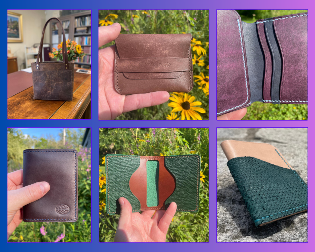 Leatherworker from the coast of Maine specializing in wallets, card holders, and bags made from fine Italian and American leathers. All items made by hand, most made exclusively with hand tools.