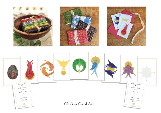 Original watercolors, poetry, and guided meditations combined with crystals, vintage fabric, hand-sewn, hand-made: kits, assemblages, and cards for meditation, inspiration, display, and gift giving.