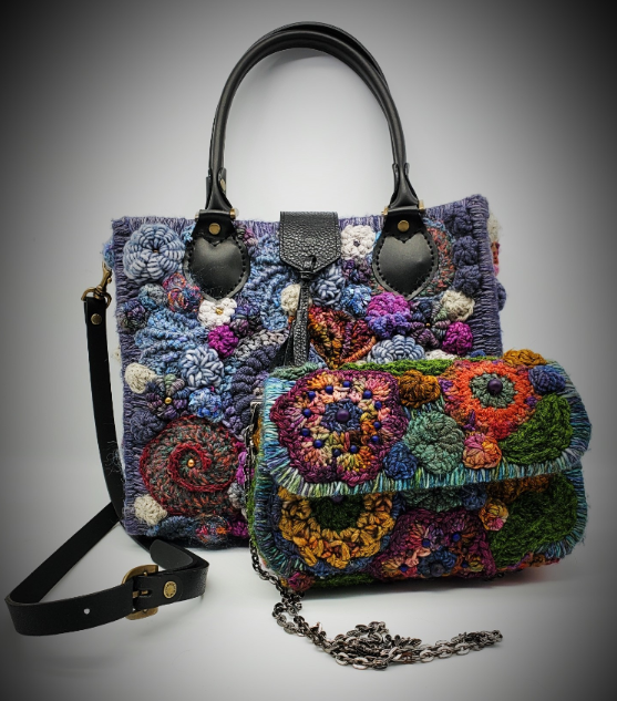 I do bags and matching mittens from vintage clothing. Ski sweater jackets kilts etc. All bags zipp and have 6 or 8 interior pockets. The company name is: The Old Bag