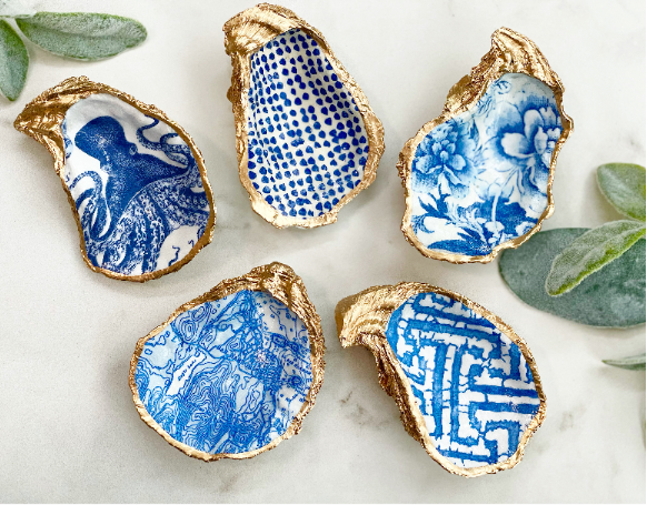 I make decoupaged oyster jewelry dishes, as well as jewelry pearl made from gold filled and sterling silver, pearls, and gemstones.