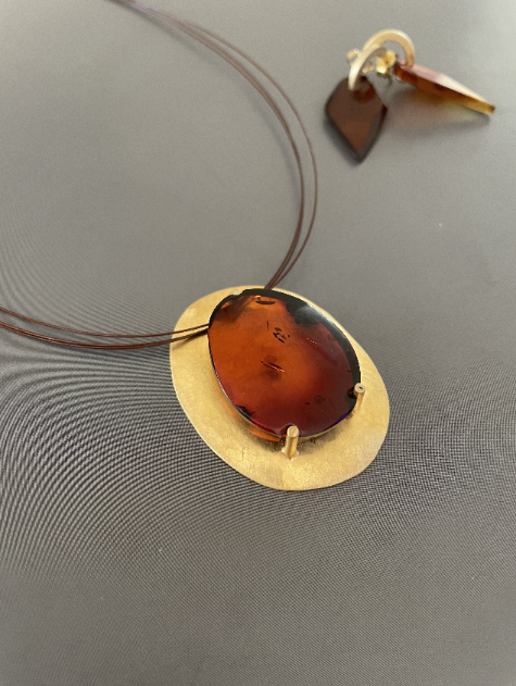 Hand polished Baltic amber gems with subtle presence of 18k, 22k gold over silver and other natural stones.