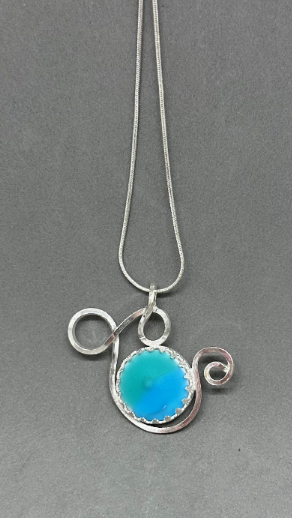 My jewelry is one of a kind. I use precious metals, mostly silver, to enhance the focal piece which might be a cabochon, crystal, or lampwork bead. Freshwater pearls & gemstones complete the design.