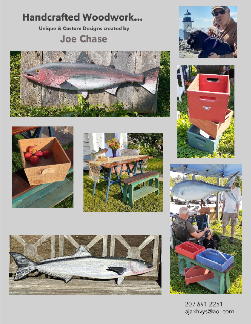 Joe Chase hand crafts unique and beautiful fish sculptures & rustic furniture. Each piece is made with locally sourced recycled material and sustainably harvested native grown Maine cedar.