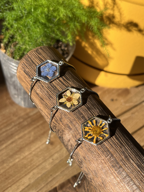 Handmade jewelry and home goods showcase real, hand-foraged plants preserved in resin. Plants are hand-foraged from the Maine wilderness and domestic gardens.