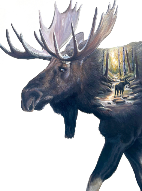 I use oils on canvas, to paint realistic wildlife with superimposed landscapes. I work meticulously, later after layer, to merge both images into a seamless composition.