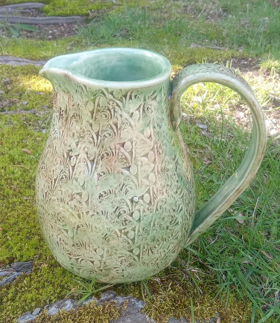 All of my pottery is made on the potters wheel, then decorated using a variety of techniques. The pots are fired to cone 6. They are dishwasher and microwave safe.