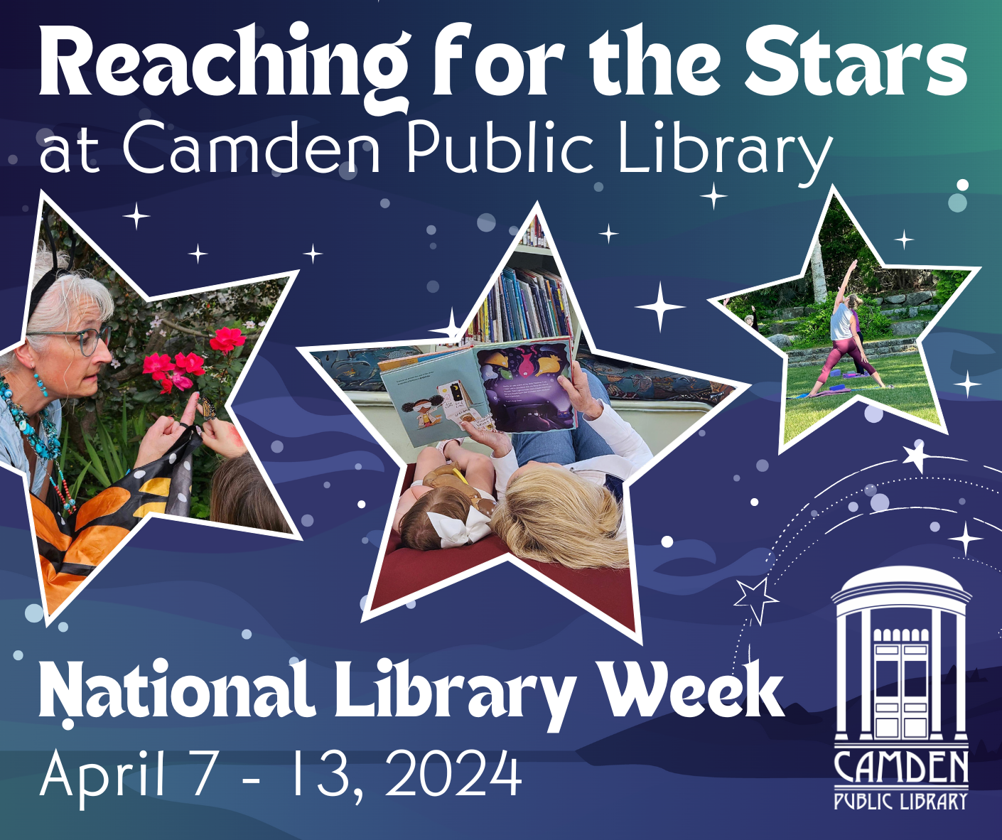 The Camden Public Library is “Reaching for the Stars” during National Library Week, April 7-13. With a partial solar eclipse taking place in Camden on the Monday of National Library Week, this year’s celebration offers a unique moment in time to recognize our nation’s libraries; highlight library workers’ contributions; and encourage library use and support.
