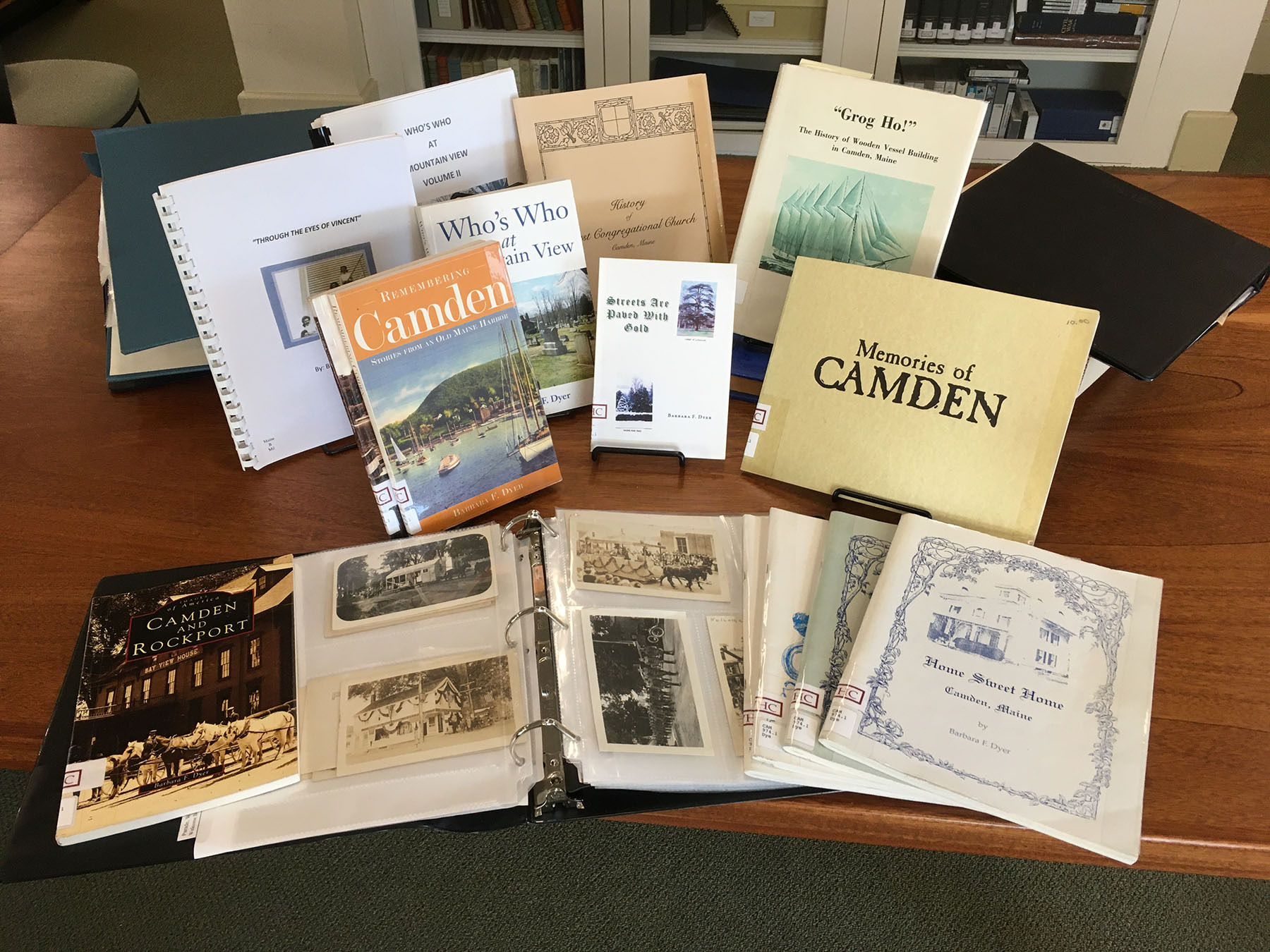 Photos: Some of the books, scrapbooks, postcards, and other records in the Camden Library’s History Walsh Center, from the hand of Barbara Dyer.